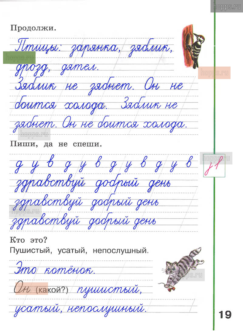 Подробные ответы к заданиям, расположенным на 19 странице рабочей тетради по русскому языку авторов Л.Ф. Климанова, А.В. Абрамов для учащихся 1 класса.