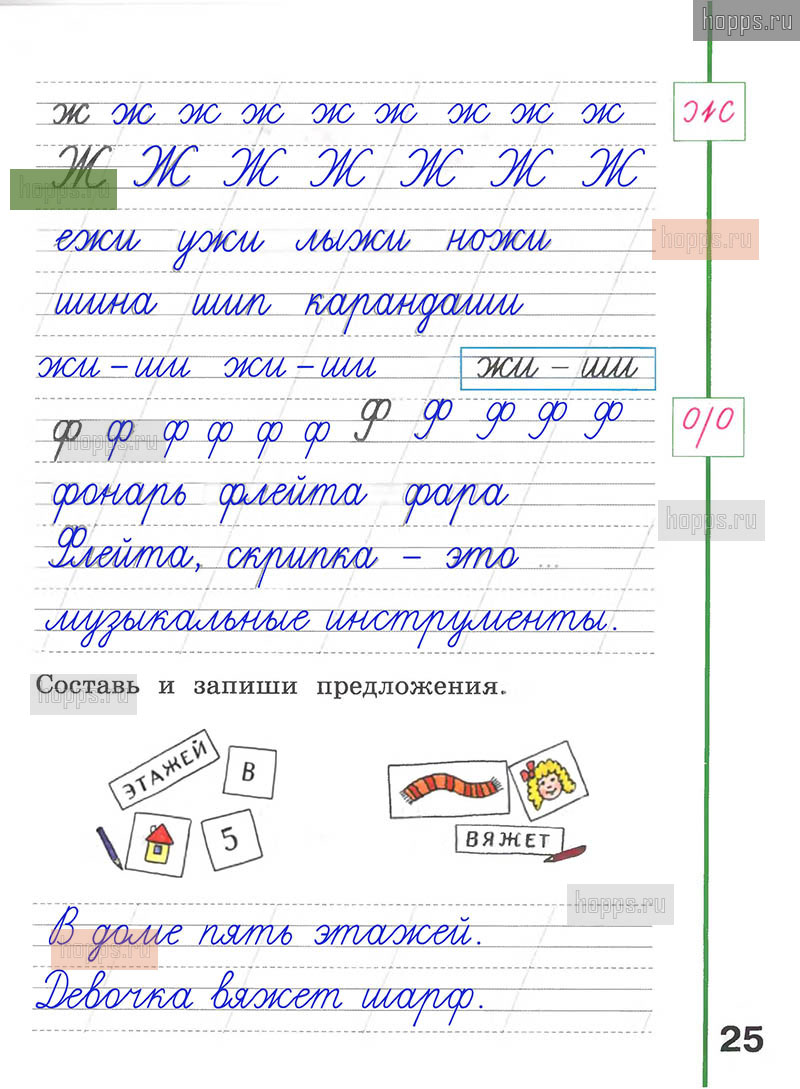 Подробные ответы к заданиям, расположенным на 25 странице рабочей тетради по русскому языку авторов Л.Ф. Климанова, А.В. Абрамов для учащихся 1 класса.