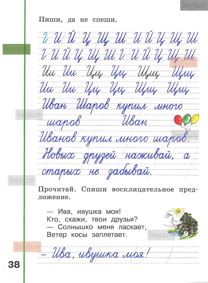 Подробные ответы к заданиям, расположенным на 38 странице рабочей тетради по русскому языку авторов Л.Ф. Климанова, А.В. Абрамов для учащихся 1 класса.