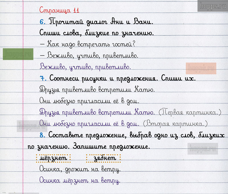 Подробные ответы к вопросам и заданиям, расположенным на 11 странице рабочей тетради по русскому языку авторов Л.Ф. Климанова, Т.В. Бабушкина для учащихся 1 класса.