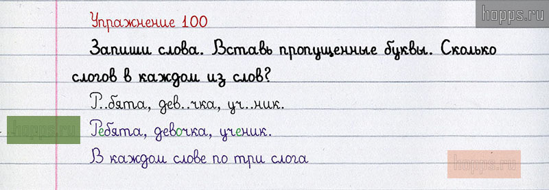 Подробные ответы к 100 упражнению учебника по русскому языку авторов Л.Ф. Климанова, С.Г. Макеева для учащихся 1 класса. Слоги.