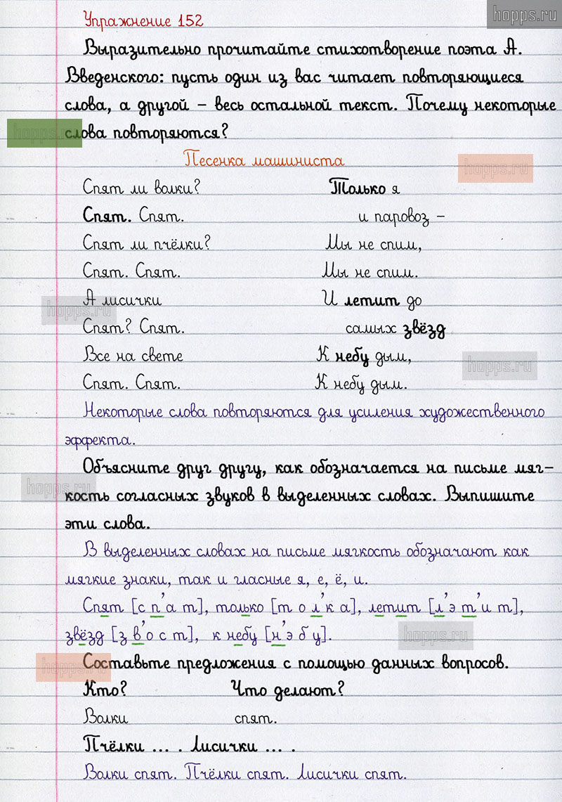 Подробные ответы к 152 упражнению учебника по русскому языку авторов Л.Ф. Климанова, С.Г. Макеева для учащихся 1 класса. Твёрдые и мягкие согласные звуки. Обозначение мягкости согласных звуков на письме.