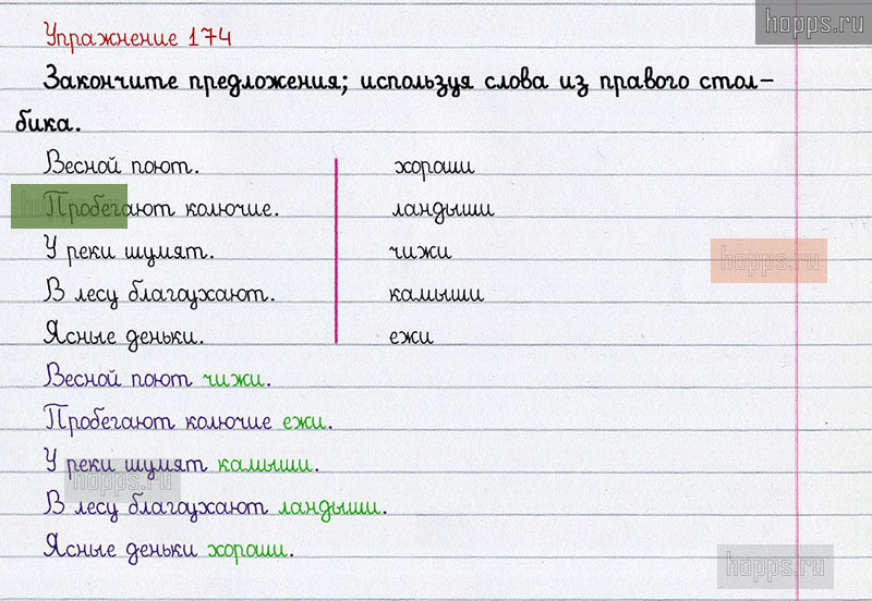 Подробные ответы к 174 упражнению учебника по русскому языку авторов Л.Ф. Климанова, С.Г. Макеева для учащихся 1 класса. Правописание буквосочетаний ЖИ — ШИ, ЧА — ЩА, ЧУ —ЩУ.