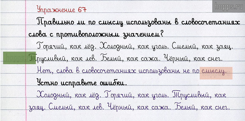 Подробные ответы к 67 упражнению учебника по русскому языку авторов Л.Ф. Климанова, С.Г. Макеева для учащихся 1 класса. Слова и противоположные по значению.