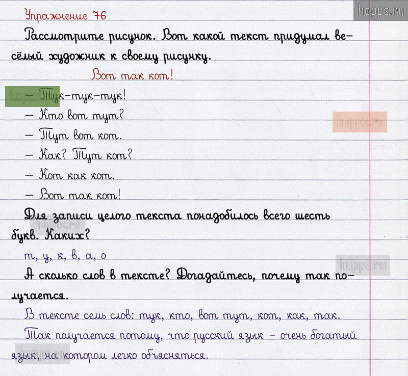 Подробные ответы к 76 упражнению учебника по русскому языку авторов Л.Ф. Климанова, С.Г. Макеева для учащихся 1 класса. Звуки и буквы.