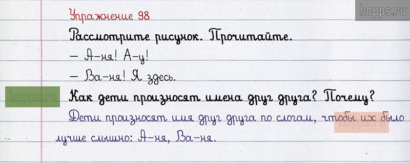 Подробные ответы к 98 упражнению учебника по русскому языку авторов Л.Ф. Климанова, С.Г. Макеева для учащихся 1 класса. Слоги.