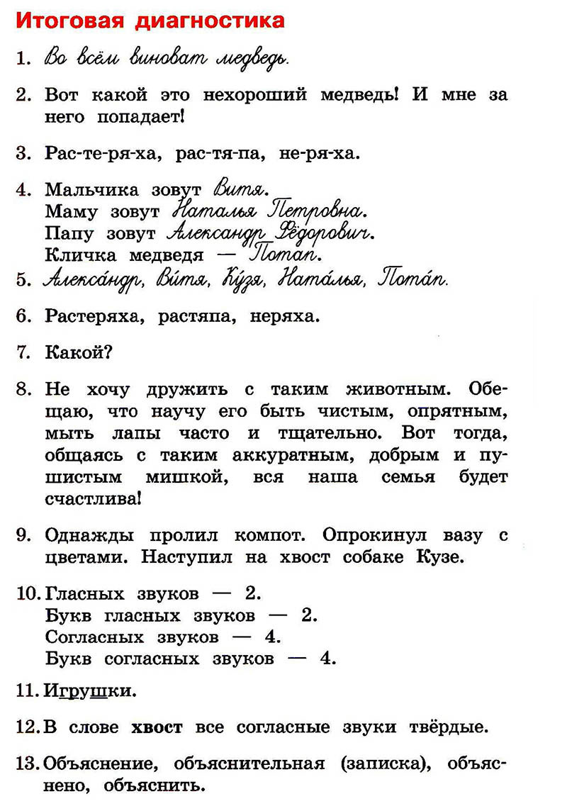 Подробные ответы к заданиям итоговой диагностики тетради учебных достижений по русскому языку автора С.Ю. Михайлова для учащихся 1 класса.