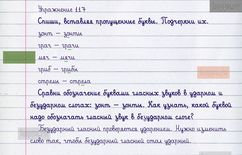 Подробные ответы к 117 упражнению учебника 2020 года по русскому языку автора Т.Г. Рамзаева для учащихся 1 класса. Гласные звуки в ударном и безударном слогах и их обозначение на письме.