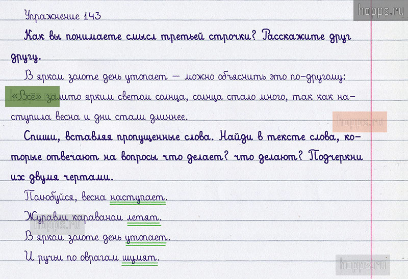 Подробные ответы к 143 упражнению учебника 2020 года по русскому языку автора Т.Г. Рамзаева для учащихся 1 класса. Слова, которые отвечают на вопросы что делает? что делают?