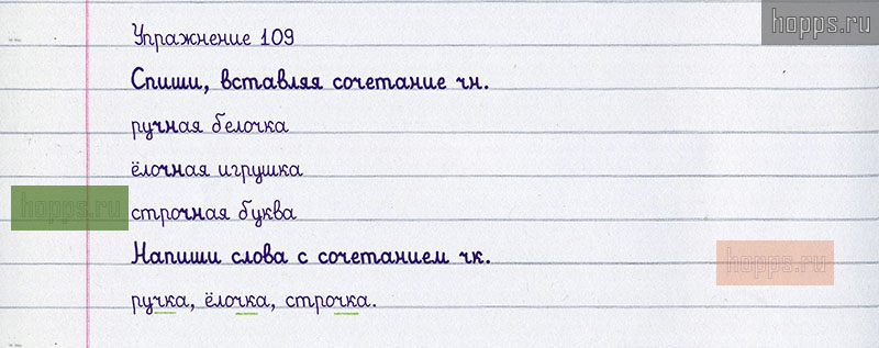 Подробные ответы к 109 упражнению учебника 2008 года по русскому языку автора Т.Г. Рамзаева для учащихся 1 класса. Сочетания чк, чн.