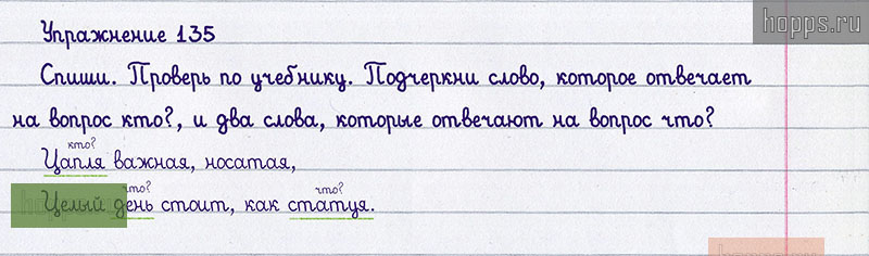 Подробные ответы к 135 упражнению учебника 2008 года по русскому языку автора Т.Г. Рамзаева для учащихся 1 класса. Слова, которые отвечают на вопросы кто? что?