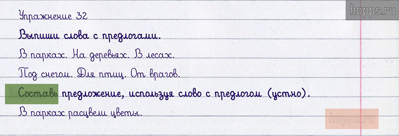Подробные ответы к 32 упражнению учебника 2008 года по русскому языку автора Т.Г. Рамзаева для учащихся 1 класса. Предлог.