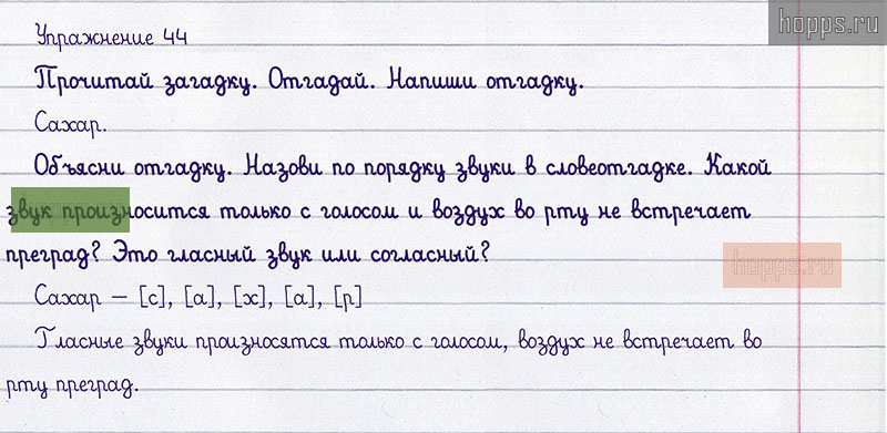 Подробные ответы к 44 упражнению учебника 2008 года по русскому языку автора Т.Г. Рамзаева для учащихся 1 класса. Гласные и согласные звуки. Обозначение звуков буквами.