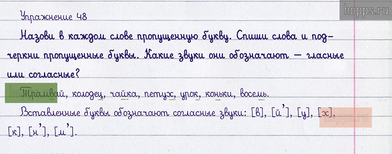 Подробные ответы к 48 упражнению учебника 2008 года по русскому языку автора Т.Г. Рамзаева для учащихся 1 класса. Гласные и согласные звуки. Обозначение звуков буквами.