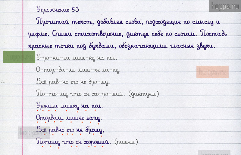 Подробные ответы к 53 упражнению учебника 2008 года по русскому языку автора Т.Г. Рамзаева для учащихся 1 класса. Гласные и согласные звуки. Обозначение звуков буквами.
