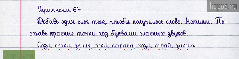 Подробные ответы к 67 упражнению учебника 2008 года по русскому языку автора Т.Г. Рамзаева для учащихся 1 класса. Слово и слог.