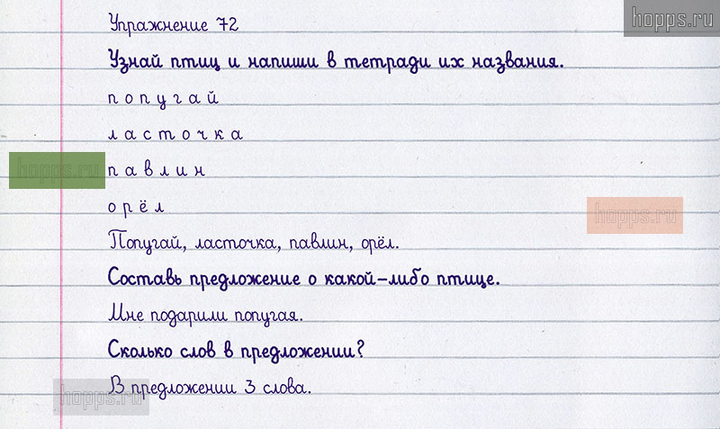 Подробные ответы к 72 упражнению учебника 2008 года по русскому языку автора Т.Г. Рамзаева для учащихся 1 класса. Слово и слог.