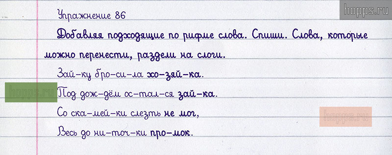 Подробные ответы к 86 упражнению учебника 2008 года по русскому языку автора Т.Г. Рамзаева для учащихся 1 класса. Перенос слов.