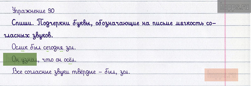 Подробные ответы к 90 упражнению учебника 2008 года по русскому языку автора Т.Г. Рамзаева для учащихся 1 класса. Обозначение мягкости согласных звуков на письме.