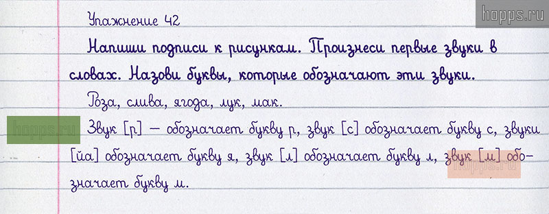 Подробные ответы к 42 упражнению учебника 2020 года по русскому языку автора Т.Г. Рамзаева для учащихся 1 класса. Звуки и буквы.