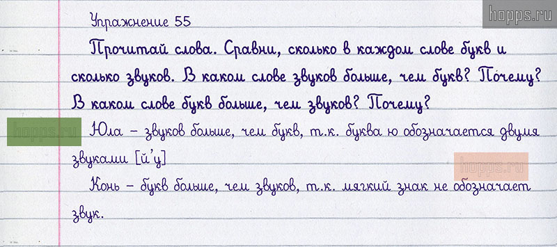 Подробные ответы к 55 упражнению учебника 2020 года по русскому языку автора Т.Г. Рамзаева для учащихся 1 класса. Гласные и согласные звуки. Обозначение звуков буквами.