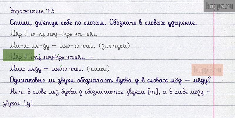 Подробные ответы к 73 упражнению учебника 2020 года по русскому языку автора Т.Г. Рамзаева для учащихся 1 класса. Слово и слог.