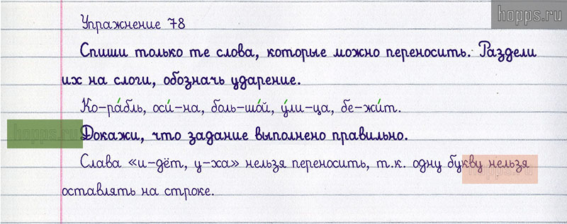 Подробные ответы к 78 упражнению учебника 2020 года по русскому языку автора Т.Г. Рамзаева для учащихся 1 класса. Перенос слов.