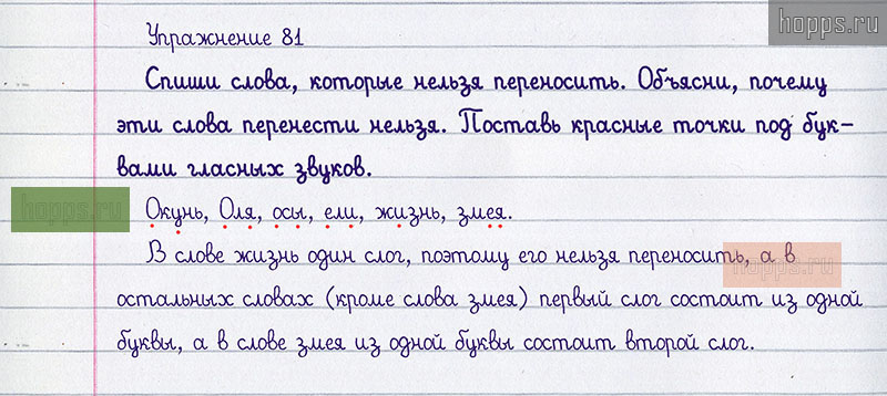 Подробные ответы к 81 упражнению учебника 2020 года по русскому языку автора Т.Г. Рамзаева для учащихся 1 класса. Перенос слов.