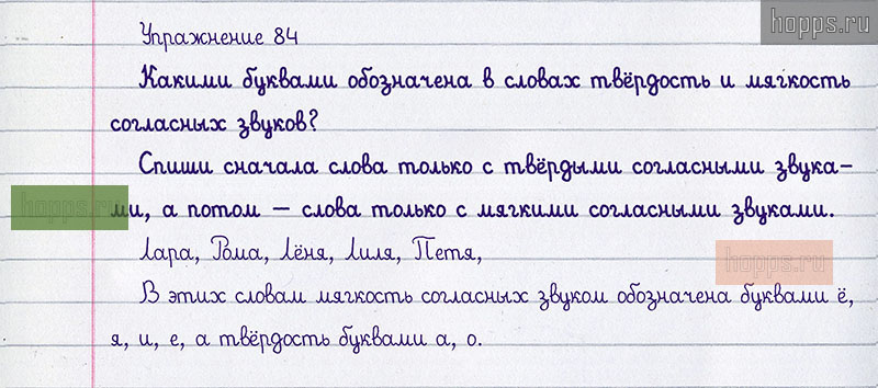 Подробные ответы к 84 упражнению учебника 2020 года по русскому языку автора Т.Г. Рамзаева для учащихся 1 класса. Обозначение мягкости согласных звуков на письме.