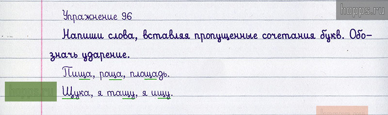 Подробные ответы к 96 упражнению учебника 2020 года по русскому языку автора Т.Г. Рамзаева для учащихся 1 класса. Шипящие согласные звуки. Буквы после шипящих в сочетаниях жи, ши, ча, ща, чу, щу.
