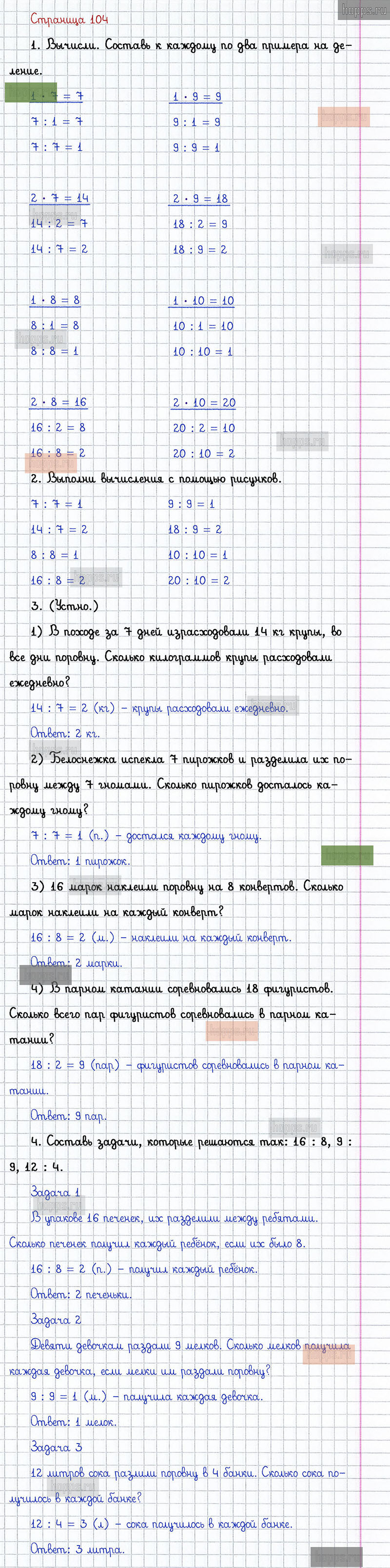 Подробные ответы к заданиям, расположенным на 104 странице 1 части учебника 2015 года по математике авторов Г.В. Дорофеев, Т.Н. Миракова, Т.Б. Бука для учащихся 2 класса.