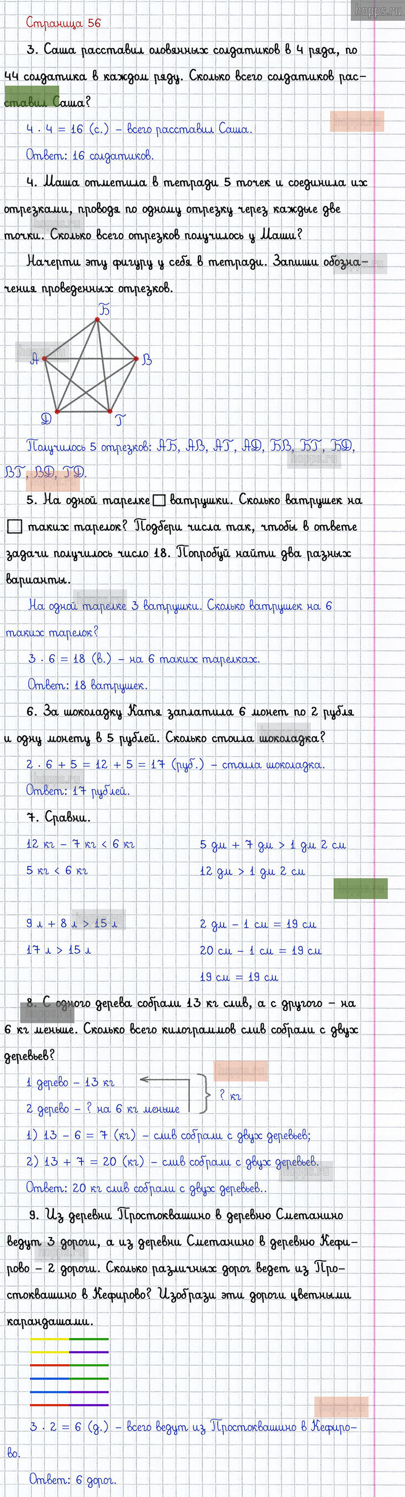Подробные ответы к заданиям, расположенным на 56 странице 1 части учебника 2015 года по математике авторов Г.В. Дорофеев, Т.Н. Миракова, Т.Б. Бука для учащихся 2 класса.