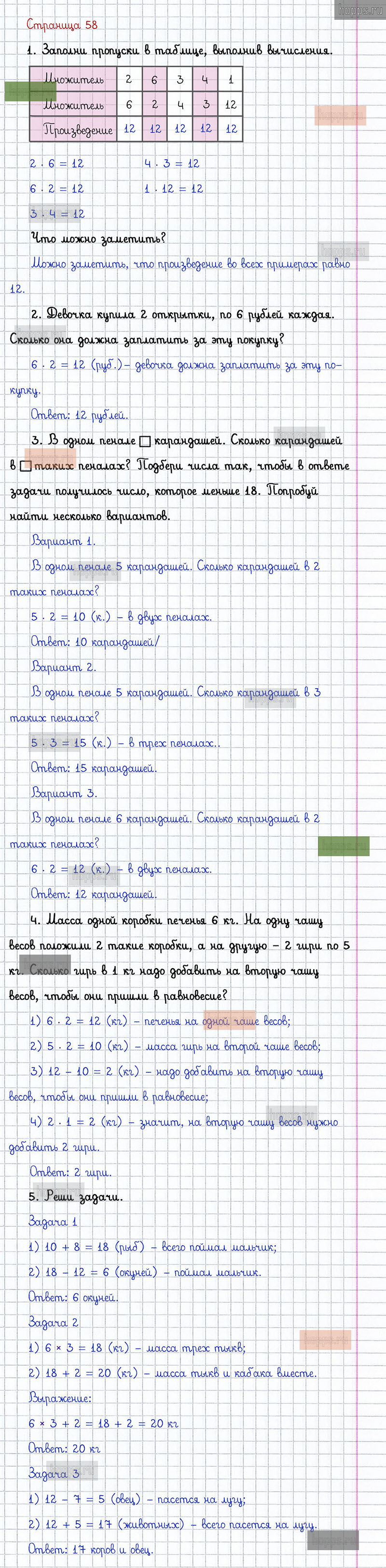Подробные ответы к заданиям, расположенным на 58 странице 1 части учебника 2015 года по математике авторов Г.В. Дорофеев, Т.Н. Миракова, Т.Б. Бука для учащихся 2 класса.