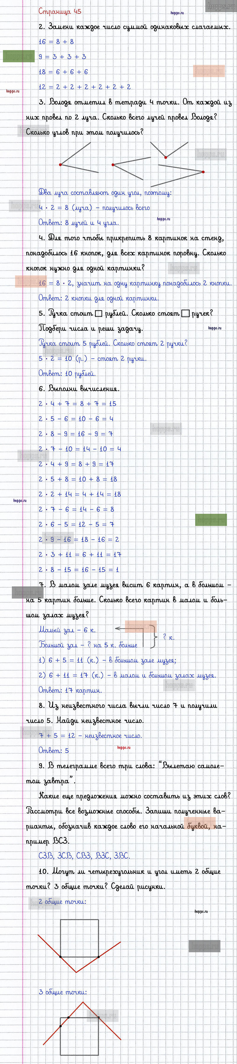 Подробные ответы к заданиям, расположенным на 45 странице 1 части учебника 2019 года по математике авторов Г.В. Дорофеев, Т.Н. Миракова, Т.Б. Бука для учащихся 2 класса.