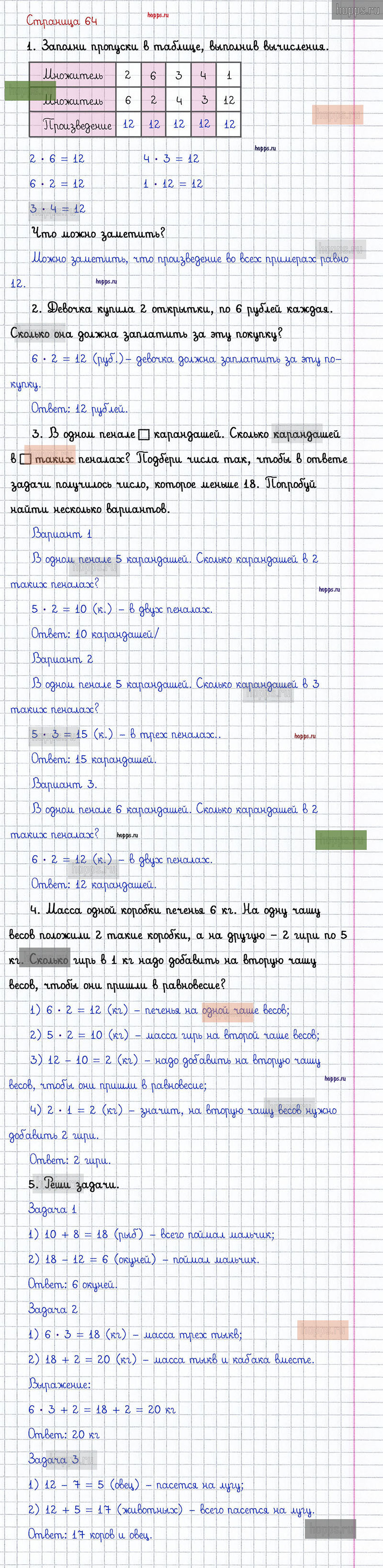 Подробные ответы к заданиям, расположенным на 64 странице 1 части учебника 2019 года по математике авторов Г.В. Дорофеев, Т.Н. Миракова, Т.Б. Бука для учащихся 2 класса.