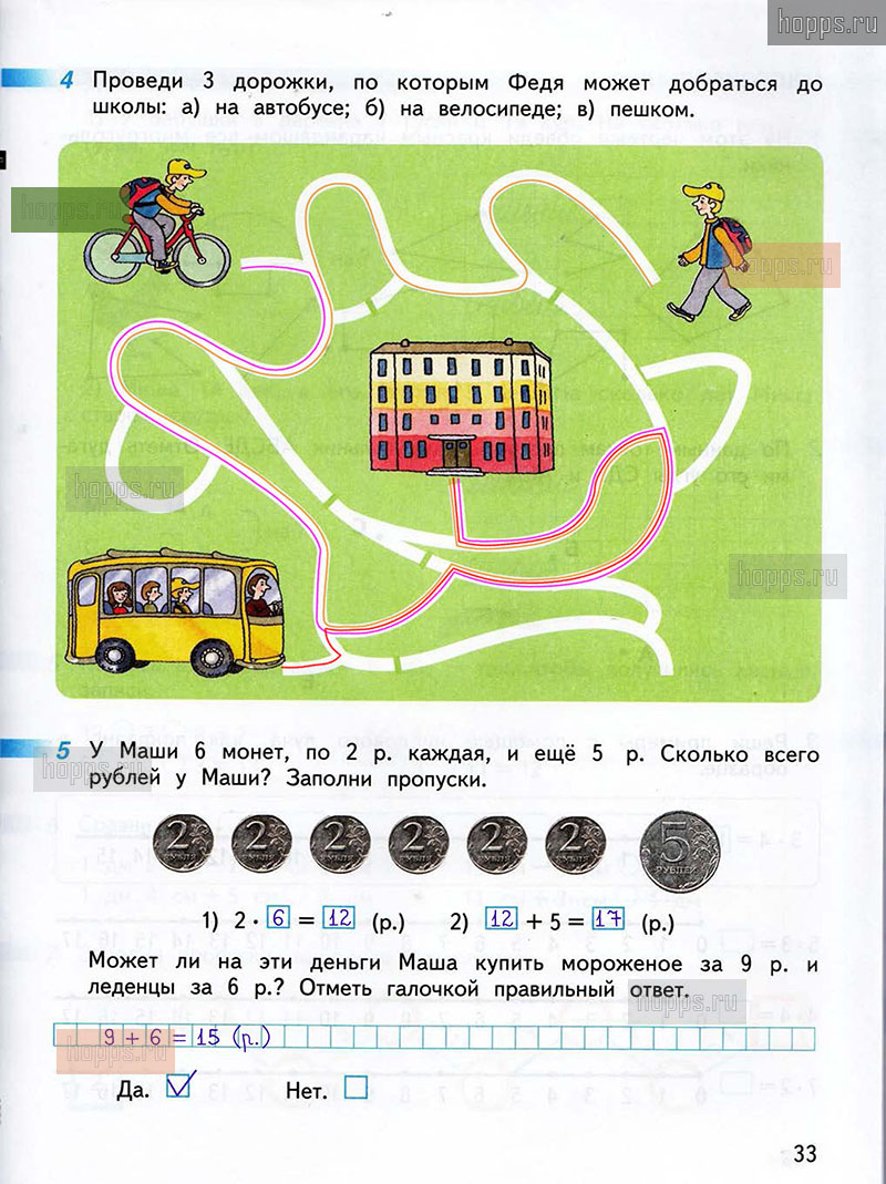 Подробные ответы к заданиям, расположенным на 33 странице 1 части рабочей тетради по математике авторов Г.В. Дорофеев, Т.Н. Миракова, Т.Б. Бука для учащихся 2 класса.