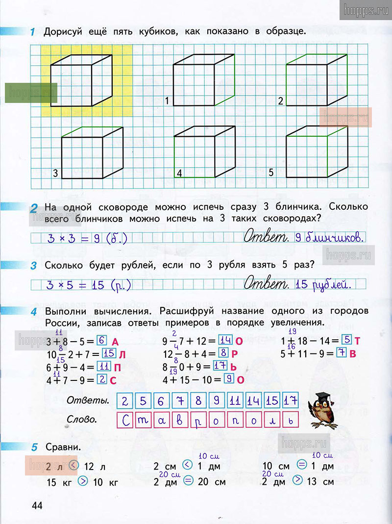 Подробные ответы к заданиям, расположенным на 44 странице 1 части рабочей тетради по математике авторов Г.В. Дорофеев, Т.Н. Миракова, Т.Б. Бука для учащихся 2 класса.