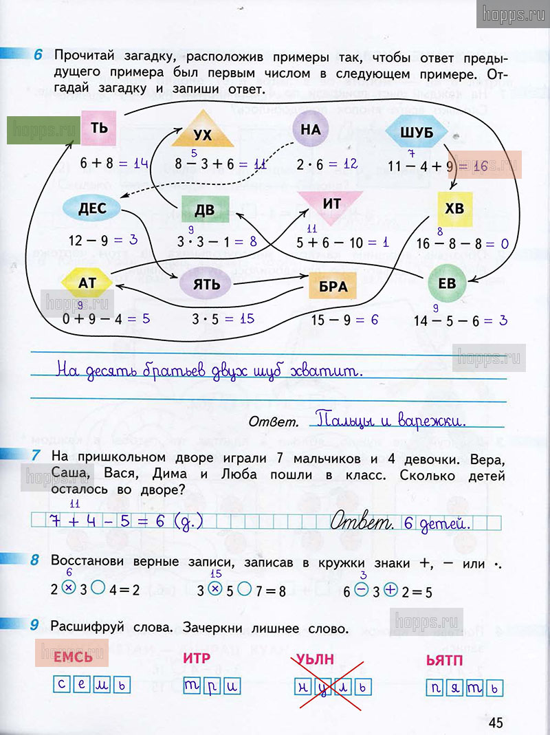 Подробные ответы к заданиям, расположенным на 45 странице 1 части рабочей тетради по математике авторов Г.В. Дорофеев, Т.Н. Миракова, Т.Б. Бука для учащихся 2 класса.