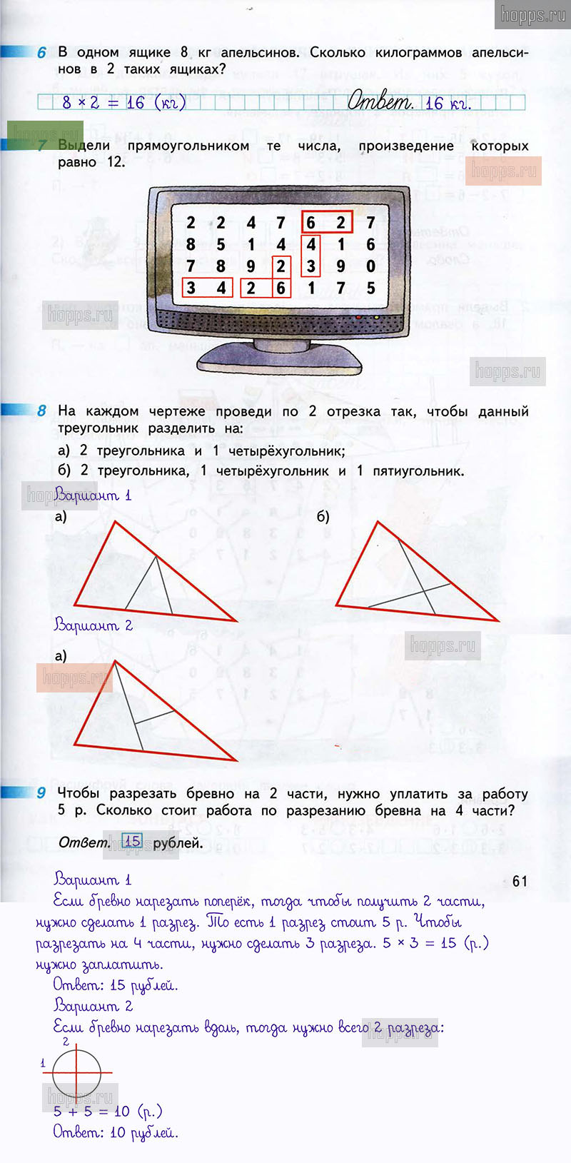 Подробные ответы к заданиям, расположенным на 61 странице 1 части рабочей тетради по математике авторов Г.В. Дорофеев, Т.Н. Миракова, Т.Б. Бука для учащихся 2 класса.