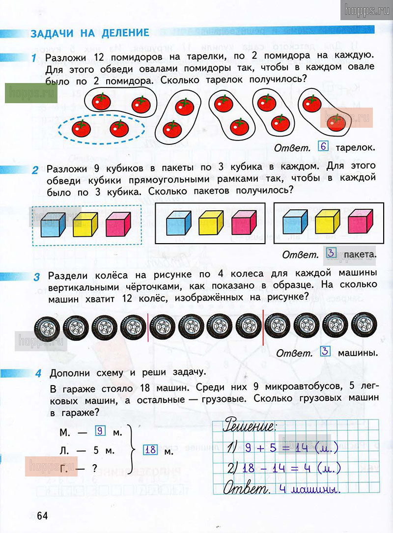 Подробные ответы к заданиям, расположенным на 64 странице 1 части рабочей тетради по математике авторов Г.В. Дорофеев, Т.Н. Миракова, Т.Б. Бука для учащихся 2 класса.