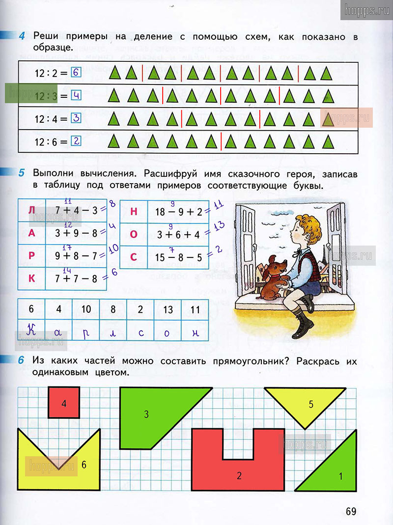 Подробные ответы к заданиям, расположенным на 69 странице 1 части рабочей тетради по математике авторов Г.В. Дорофеев, Т.Н. Миракова, Т.Б. Бука для учащихся 2 класса.