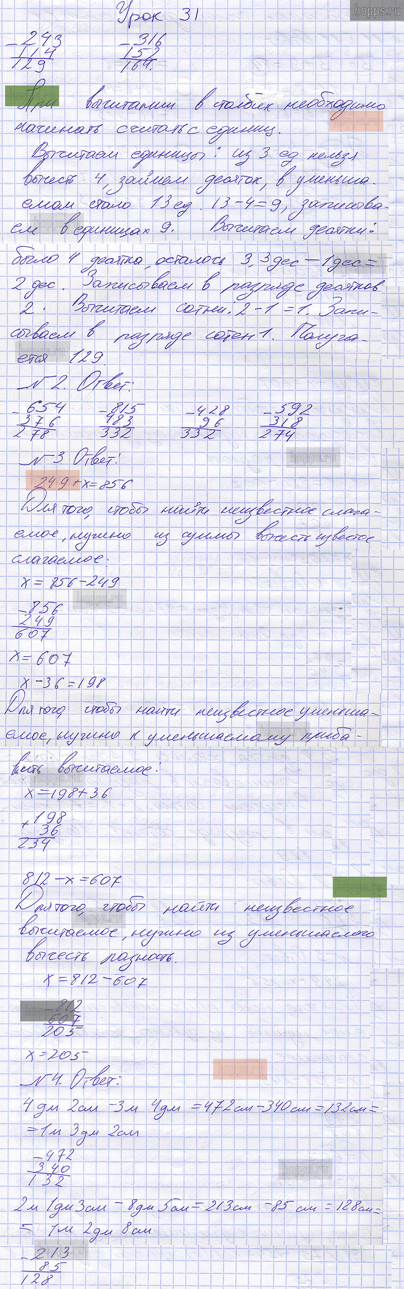 Подробные ответы к заданиям, расположенным на 60 странице 1 части учебника по математике автора Петерсон Л.Г. для учащихся 2 класса. Урок 31. Сложение и вычитание трёхзначных чисел: 243-114, 316-152.