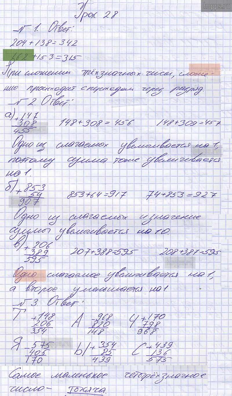 Подробные ответы к заданиям, расположенным на 54 странице 1 части учебника по математике автора Петерсон Л.Г. для учащихся 2 класса. Урок 28. Сложение трёхзначных чисел: 204+138, 162+153.