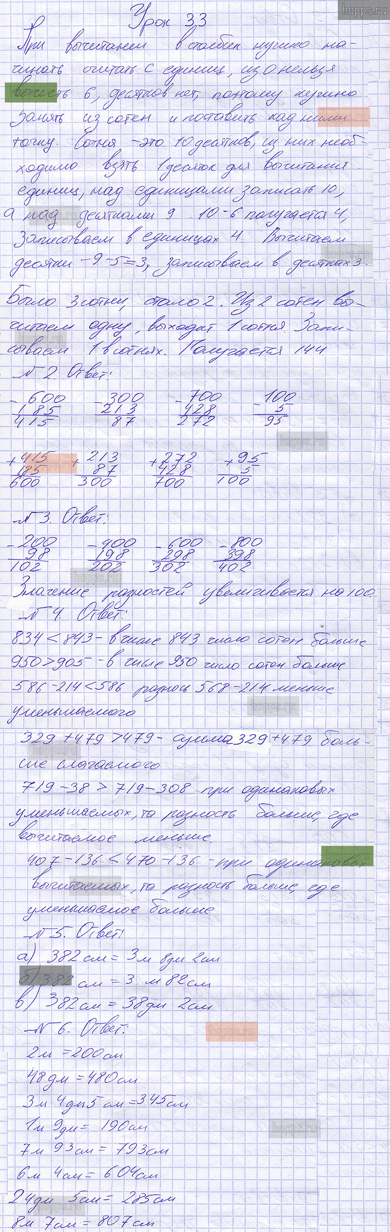 Подробные ответы к заданиям, расположенным на 64 странице 1 части учебника по математике автора Петерсон Л.Г. для учащихся 2 класса. Урок 33. Вычитание трёхзначных чисел: 300-156.