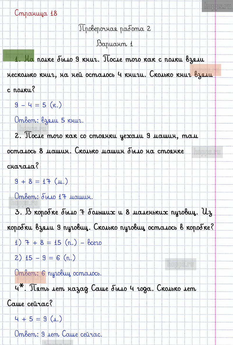 Подробные ответы к заданиям, расположенным на 18 странице проверочных работ по математике авторов С.И. Волкова для учащихся 2 класса. Сложение и вычитание. Проверочная работа 2, вариант 1.
