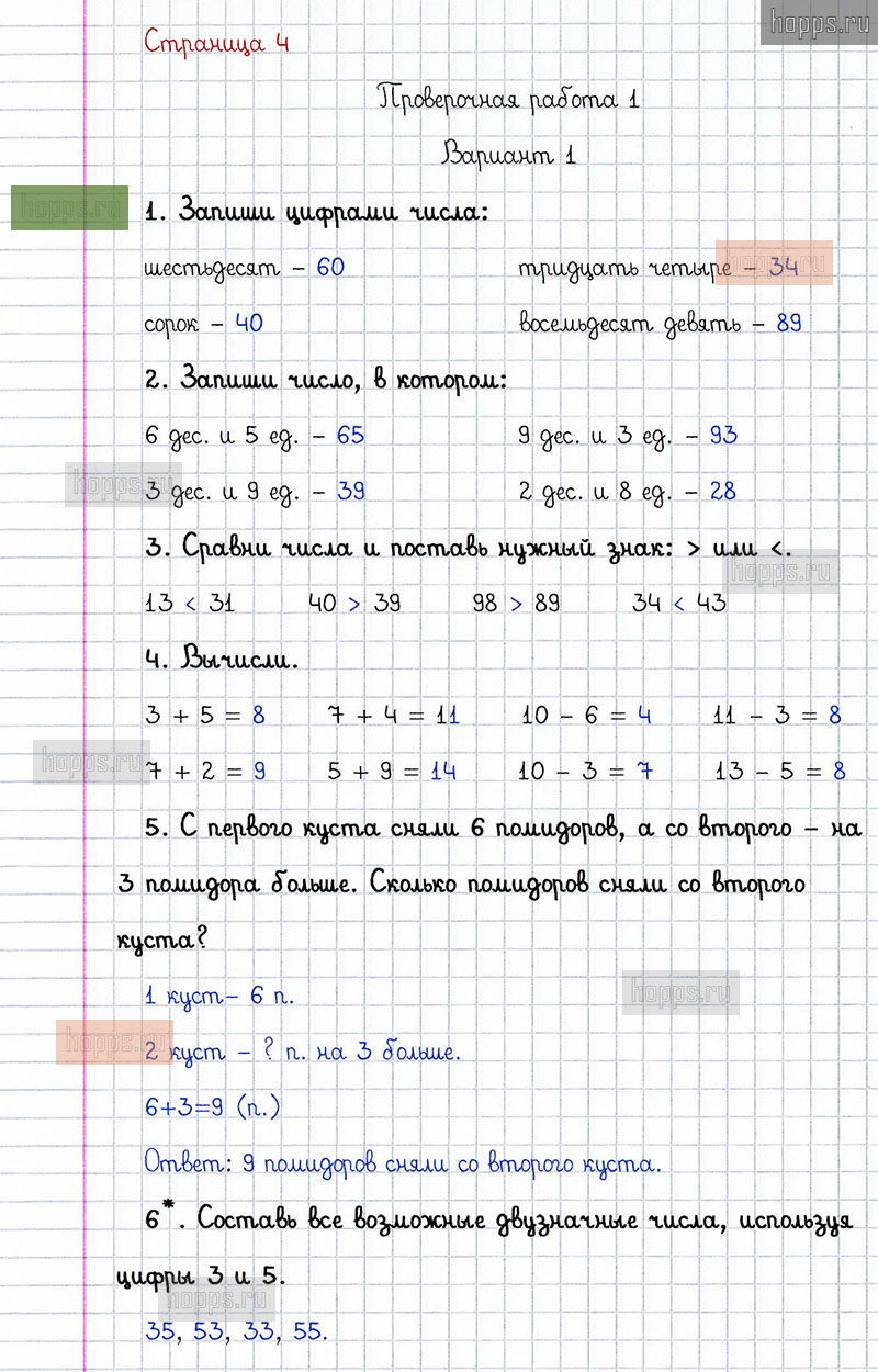 ГДЗ к 4 странице проверочных работ по математике С.И. Волкова за 2 класс | Источник: Hopps.ru