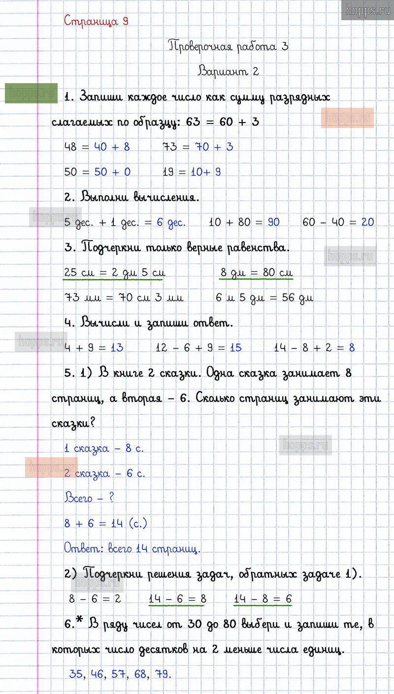 Подробные ответы к заданиям, расположенным на 9 странице проверочных работ по математике авторов С.И. Волкова для учащихся 2 класса. Нумерация. Проверочная работа 3, вариант 2.
