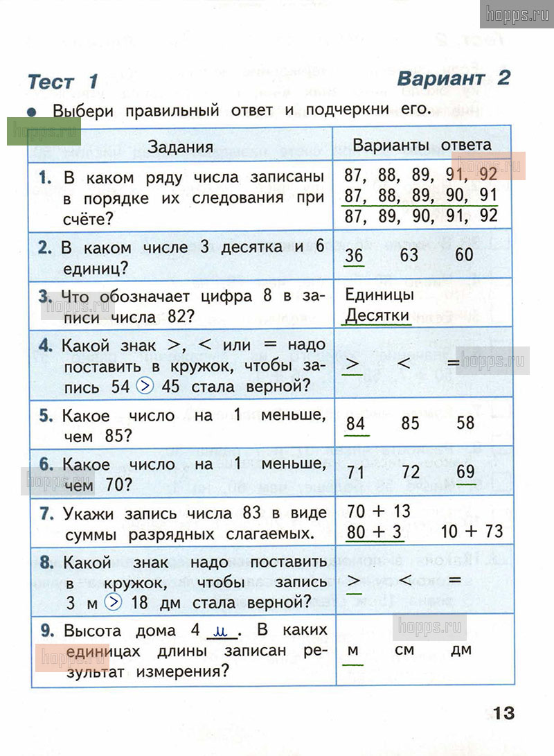 Подробные ответы к заданиям, расположенным на 13 странице тестов по математике автора С.И. Волкова для учащихся 2 класса.