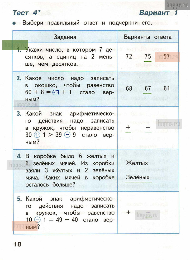 Подробные ответы к заданиям, расположенным на 18 странице тестов по математике автора С.И. Волкова для учащихся 2 класса.