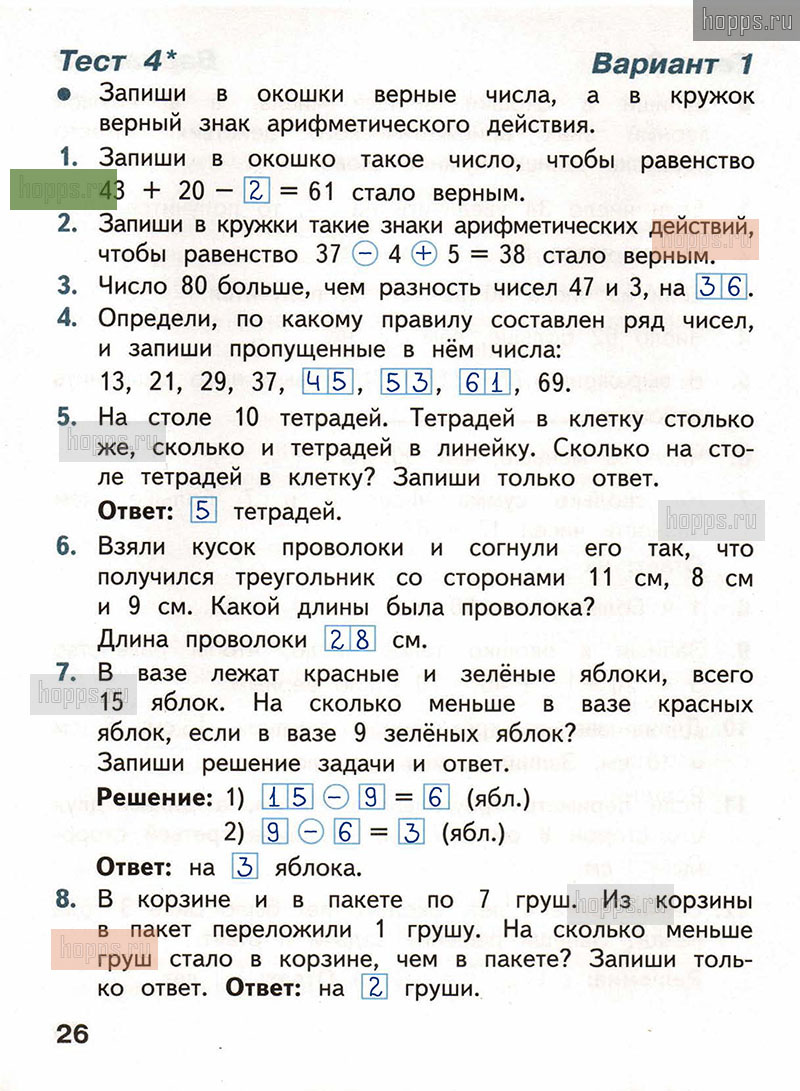 Подробные ответы к заданиям, расположенным на 26 странице тестов по математике автора С.И. Волкова для учащихся 2 класса.